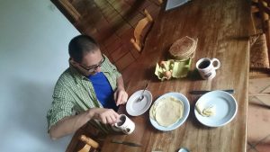 Unser Gepäck mussten wir wegen Übergröße gesondert abgeben. Der Flughafenmitarbeiter fragte mich (Sandro) etwas was sich nach „französisch“ oder „Frankreich“ anhörte. Da ich nichts verstand, gab ich ihm zu verstehen „nix französisch“ – daraufhin zeigte er mir seine Unterarme auf denen die französische Flagge gemalt war. Erst dann kam mir das Fußballspiel in den Sinn – es blieb aber alles ohne „negative Folgen“ 🙂